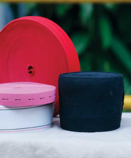 Such as Drawstring, Drawstring Tipping, Narrow Fabric, Doubling and Twisting Yarn, Woven Label, Printed Label, Screen Printed label, Sewing Thread, Poly Bag, Gum tape, Elastic, Embroidery and Price Ticket for the apparel industry. We always ensure quick development with actual color matching, perfect color fastness and earlier delivery of multiple goods with our own logistics support.